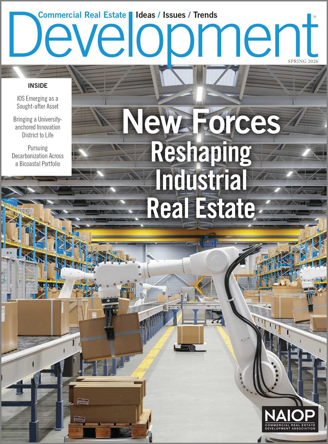 Development’s spring issue examines shifting priorities in industrial real estate, including power, automation and regional supply chain strategies. Also featured: the growing attraction of industrial outdoor storage; the complexities of developing a university-anchored innovation district; and a CRE company’s pursuit of decarbonization across its bicoastal portfolio.