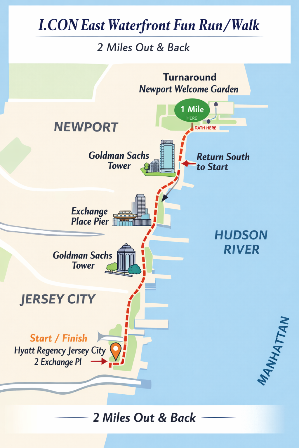 Kick-start day two of I.CON East with a casual 2-mile out-and-back fun run/walk along the Hudson River waterfront!