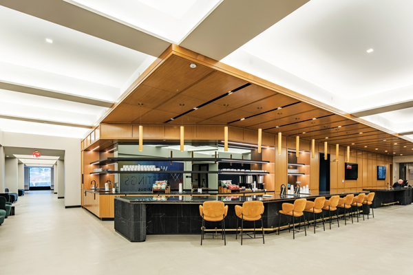 The coffee bar at Industrious’ PENN 1 coworking space in Manhattan. Coworking or flex space in a building is becoming a crucial amenity. Vornado